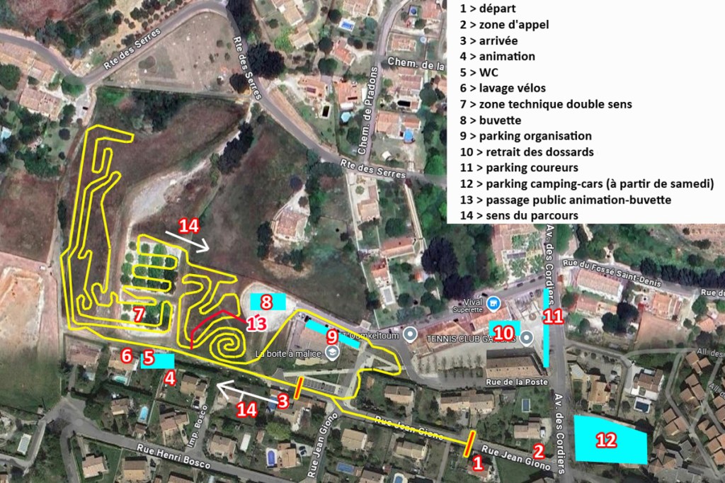 Le parcours du Cyclo-cross du Pays d’Apt est tracé au centre du village de Gargas. Voici le parcours sur lequel vous avez évolué le dimanche 11 janvier 2026 : départ et arrivée sur route, 80% du parcours sur herbe, zone technique double avec station de lavage à proximité…