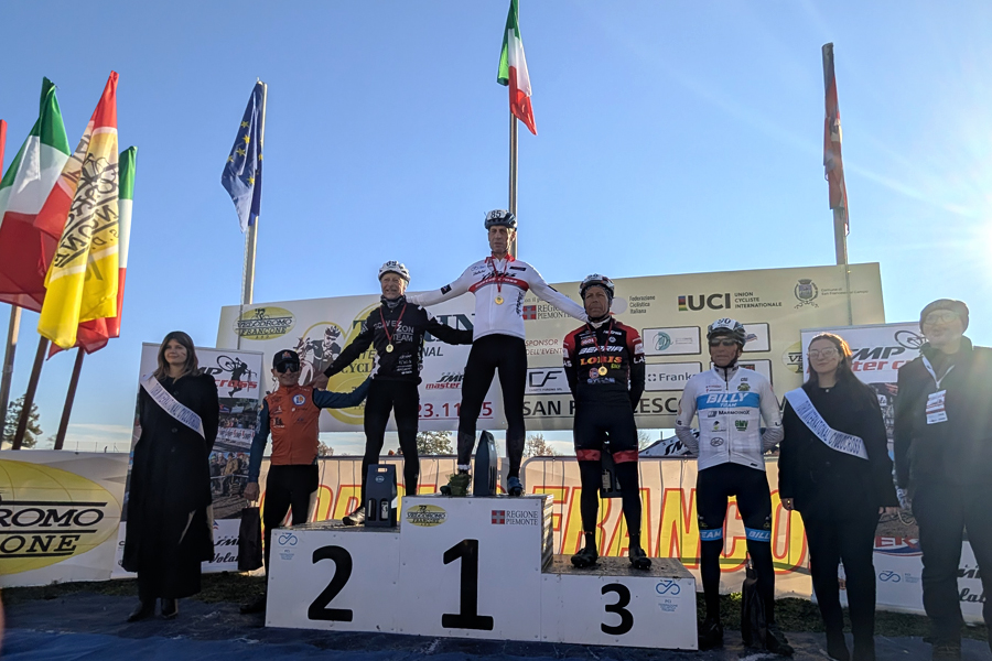 Entre les championnats d’Europe et du monde Master, Michèle et Bruno se sont alignés au départ du cyclo-cross international de Turin, manche de la Coupe d’Italie. Sur un magnifique parcours rendu très technique par le dégel d’un sol glacé, ils ont livré bataille en tête pour finalement se classer tous les deux quatrièmes de leurs courses : Michèle dans la course Master femmes toutes catégories (35 ans et plus) et Bruno dans la course Master 60 ans et plus. Leurs performances sont remarquables au plus haut niveau national italien. C’est important que le Vélo Club Apt et ses partenaires s’exportent de belle manière à l’étranger. Bravo !