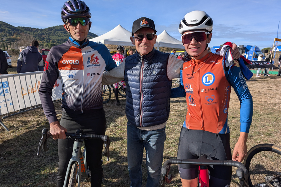 Le dimanche 28 décembre, nous organisions la reconnaissance officielle du parcours de l’édition 2026 du Cyclo-cross du Pays d’Apt à Gargas. En plus d’une solide équipe de notre club, des cyclistes de toute la région se sont joints à nous pour une matinée de cyclo-cross où chacun a pu prendre ses marques sur un tracé rendu technique par quelques jours de pluie. Les élus de la mairie de Gargas nous ont rejoints pour apprécier à la fois la qualité du parcours local et le formidable état d’esprit qui règne autour de cette discipline. Maintenant, place à la course prévue le 11 janvier, servant de support au championnat Région Sud UFOLEP… en attendant l’organisation du championnat National UFOLEP 2029, qui sera organisé par le Vélo Club Apt au village du cyclo-cross ; autrement dit : Gargas.