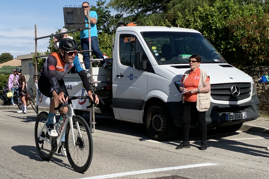 Jean-Christophe Rousset, dit JC, est un pilier du Vélo Club Apt, qui dispose de belles qualités de grimpeur. Il court en UFOLEP et participe à quelques cyclosportives. Il lui faut une volonté de fer, car son métier lui impose des horaires très contraignants. Qui ne connait pas la pâtisserie Rousset, considérée par beaucoup comme la meilleure pâtisserie d’Apt ? Debout chaque jour à 3 heures du matin, le mot « récupération » ne fait pas partie de son vocabulaire : « après 30 ans de football et 5 ans de triathlon, je me suis mis à ne faire plus que du vélo car mon corps ne suivait plus. Par rapport à mes contraintes professionnelles, s’entraîner dans trois disciplines différentes devenait vraiment compliqué… J’ai donc pris ma première licence au Vélo Club Apt en 2010. Je faisais même partie du bureau, jusqu’à la valse des présidents, qui a débouchée vers une période difficile pour le club… Heureusement qu’aujourd’hui, le Vélo Club Apt renait de ses cendres ! Personnellement, ce que je préfère, c’est les longues sorties en groupe et les stages qui sont organisés, mais, malheureusement, mon métier de pâtissier est un frein à tout ceci. Je n’ai pas d’objectif précis, et en prenant de l’âge, je pense que je vais privilégier le vélo plaisir, plutôt que la compétition qui est incompatible avec mon métier ; surtout si on vise la performance. En plein effort et aussi quand j’ai le moral en berne, une phrase revient dans ma tête : tant que tu es en vie, vis ! »